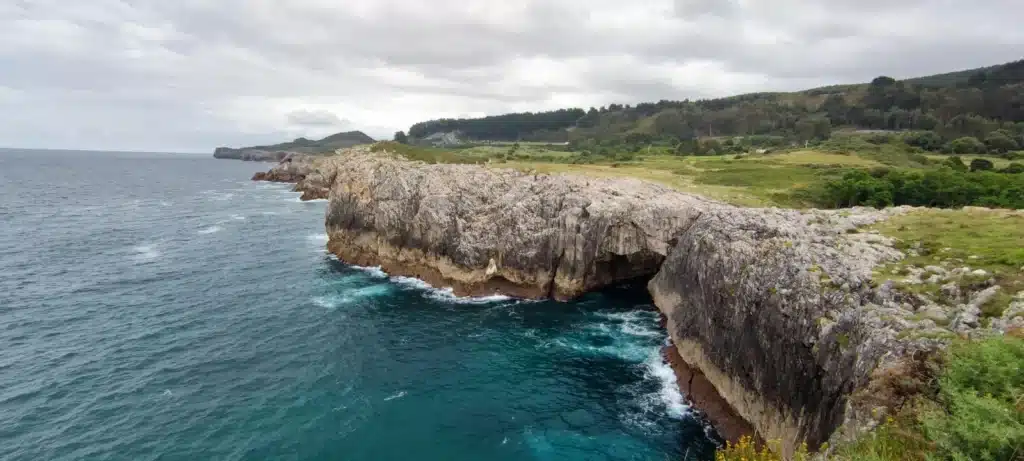 Si miramos en el oriente de Llanes, el mirador de los Acantilados de Buelna es uno de los enclaves más impactantes de la costa de Llanes. Desde aquí se obtiene una vista espectacular del famoso Puente Caballo, una formación natural que se eleva sobre el mar y que se ha convertido en uno de los paisajes más fotografiados del concejo. La fuerza del Cantábrico golpeando los acantilados crea una escena sobrecogedora que no deja indiferente a nadie.