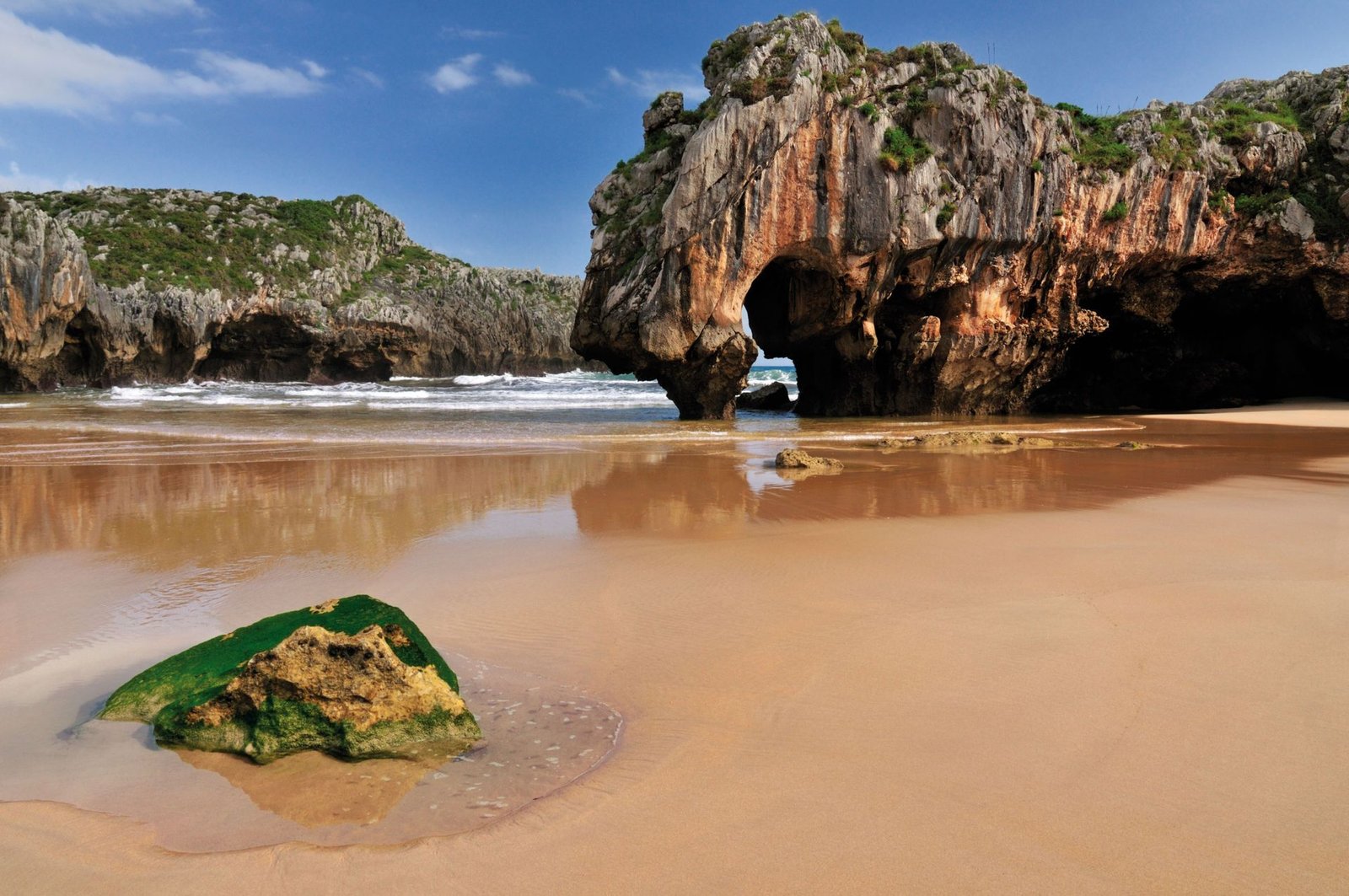 - Día 2 (Nueva–Pría): Cuevas del Mar con bajamar, paseo corto hasta Bufones de Pria si hay mar, y parada final en Gulpiyuri con marea media-alta. Cena en el restaurante El Cuchareru de Nueva.