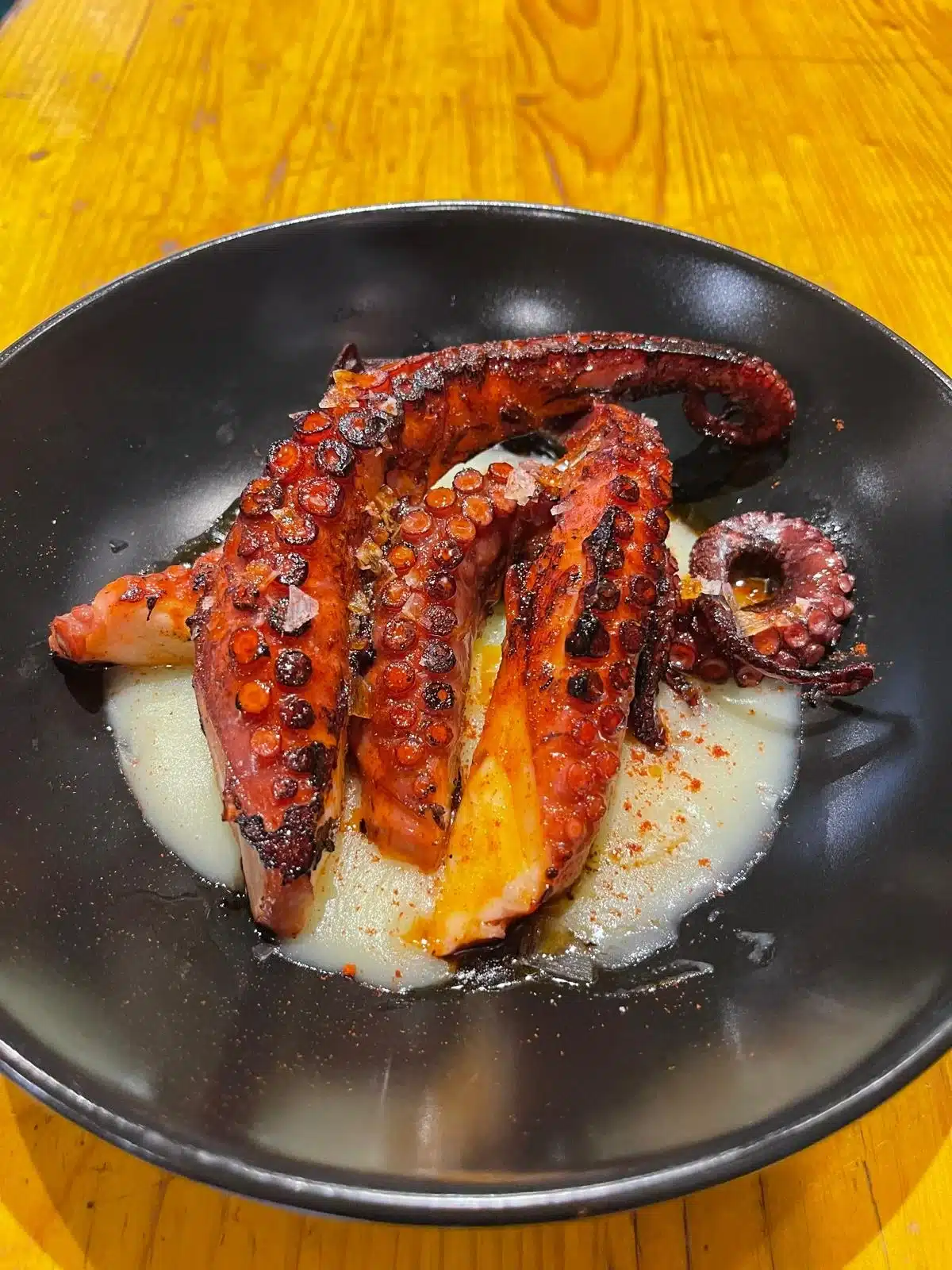 - Pulpo a la brasa con puré de puerros y patatas, uno de los platos más populares de la carta.